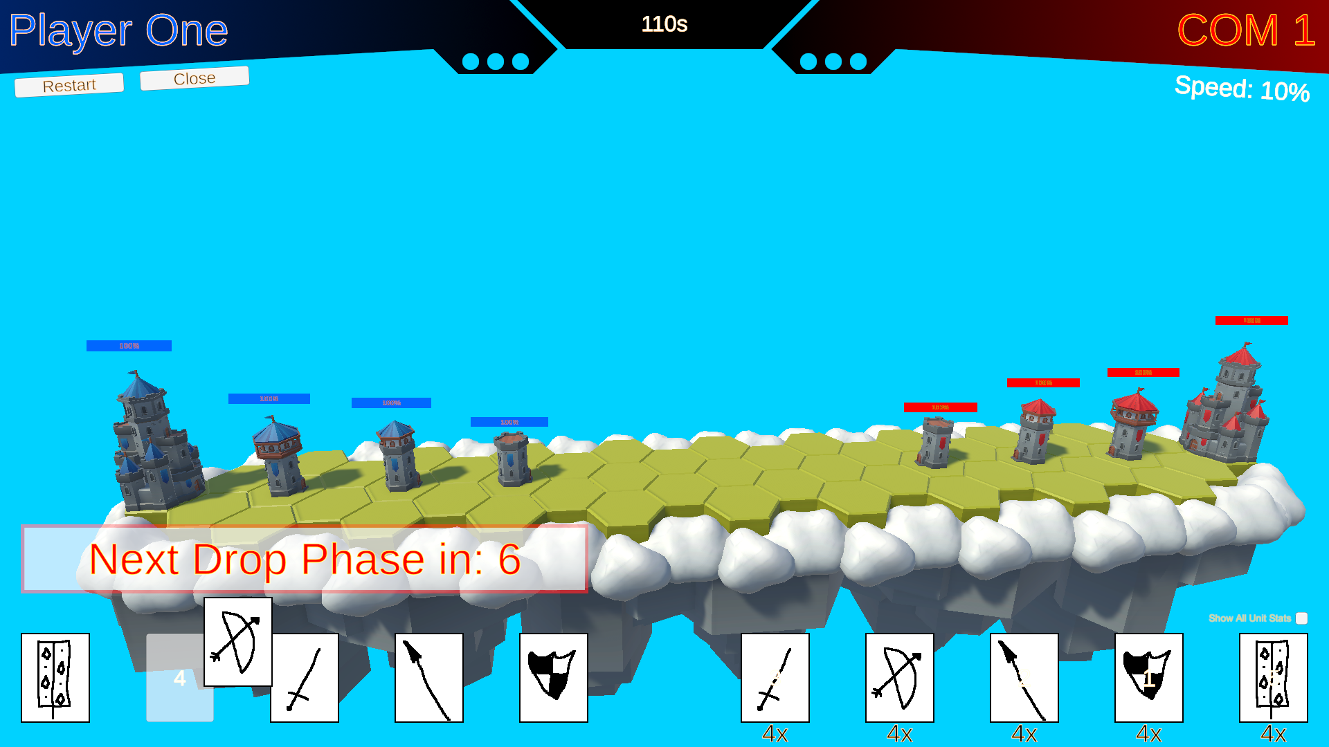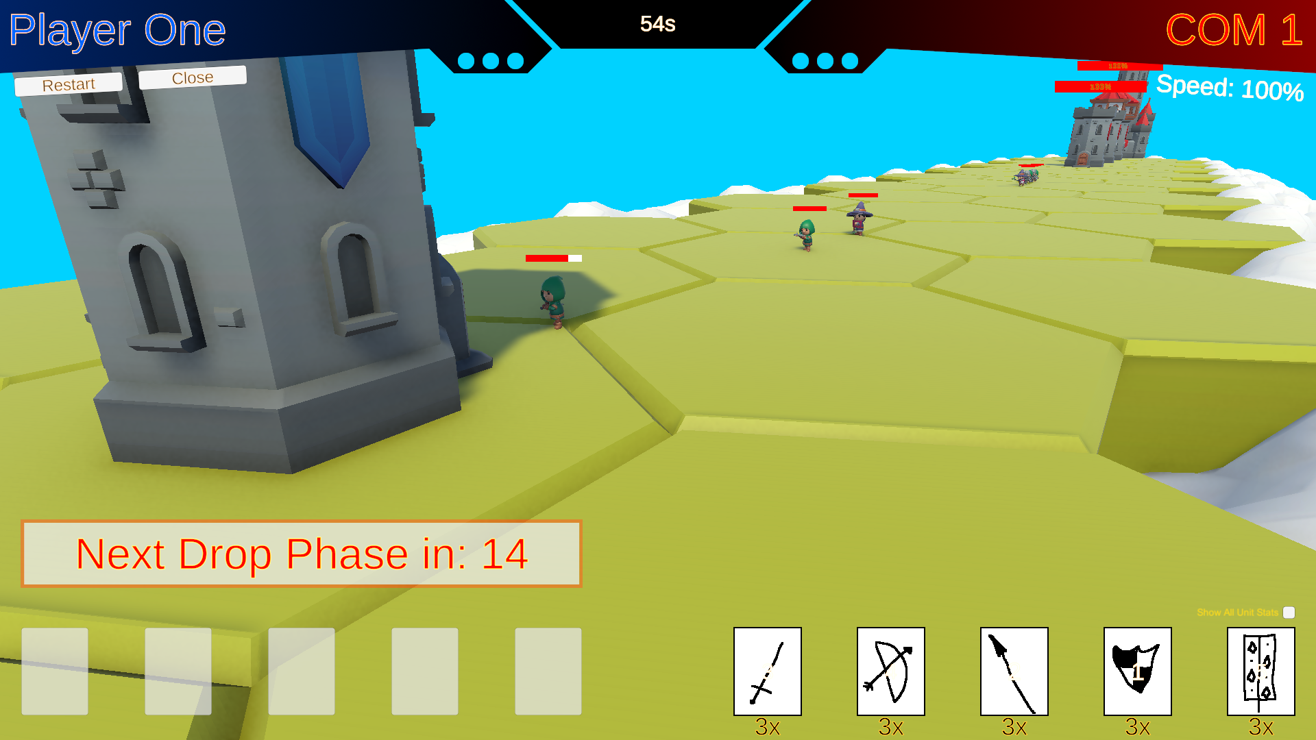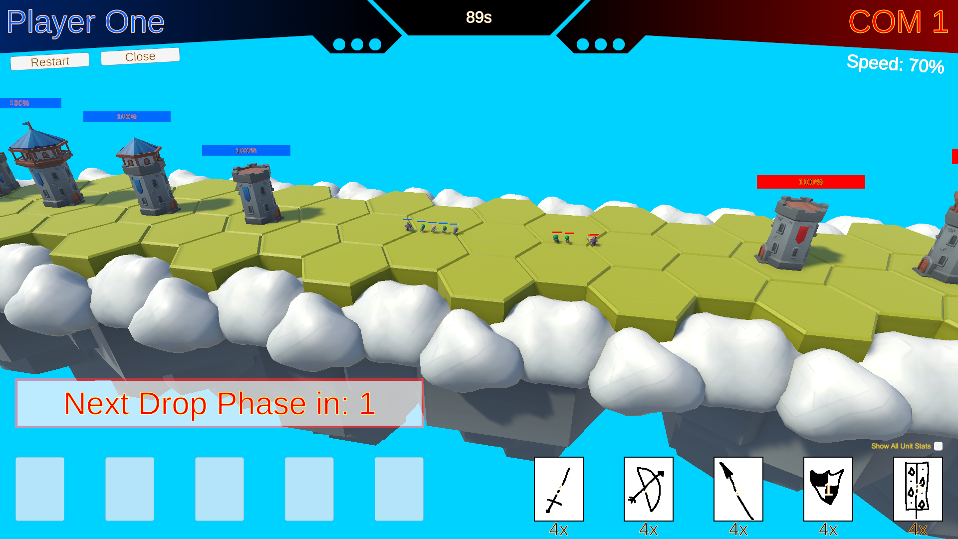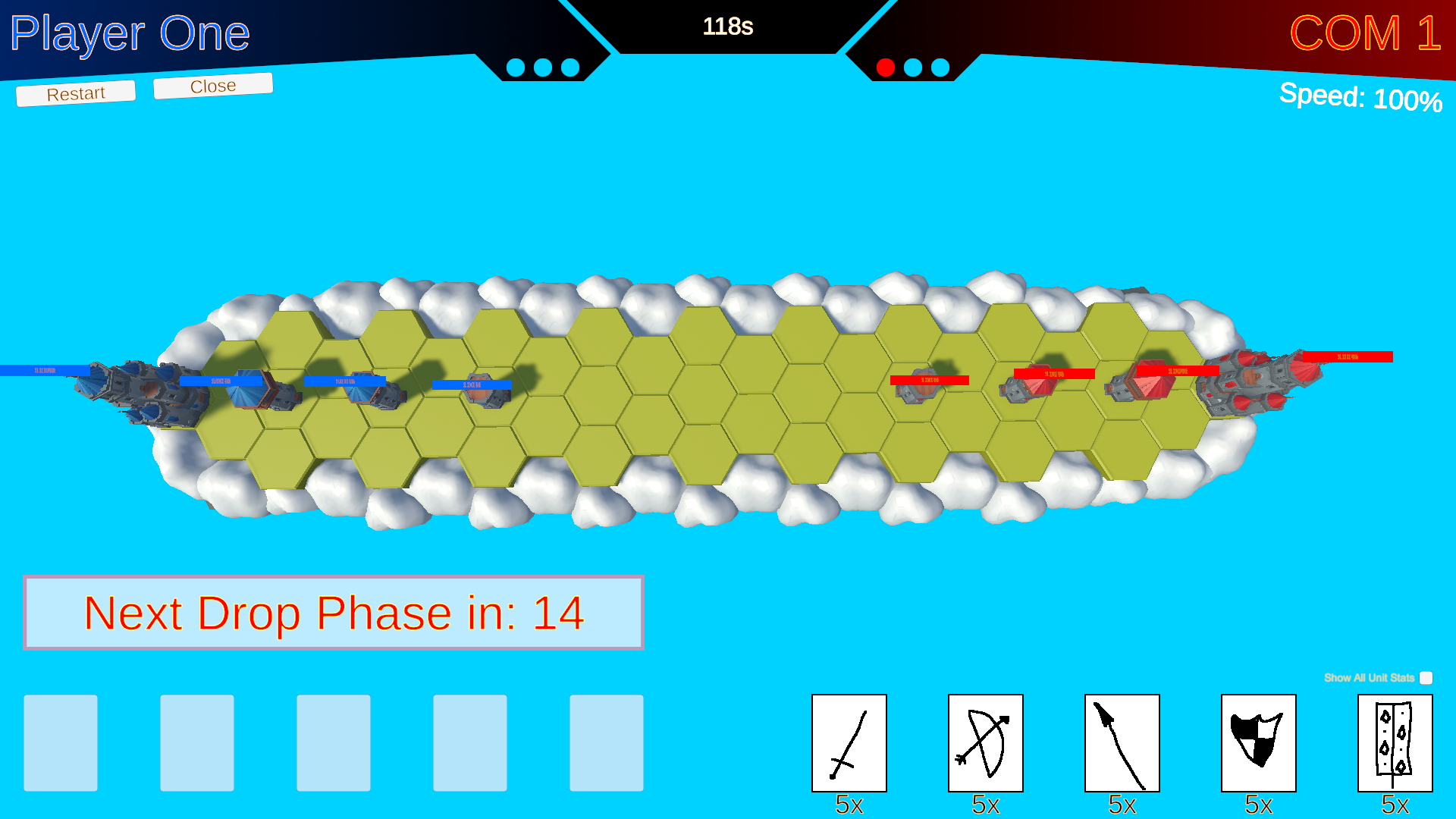 - Upon the expiration of the 16-second timer, all cards placed in the numbered drop slots will be spawned, and a new Drop Phase will immediately begin. Plan your deployments carefully within this time limit!