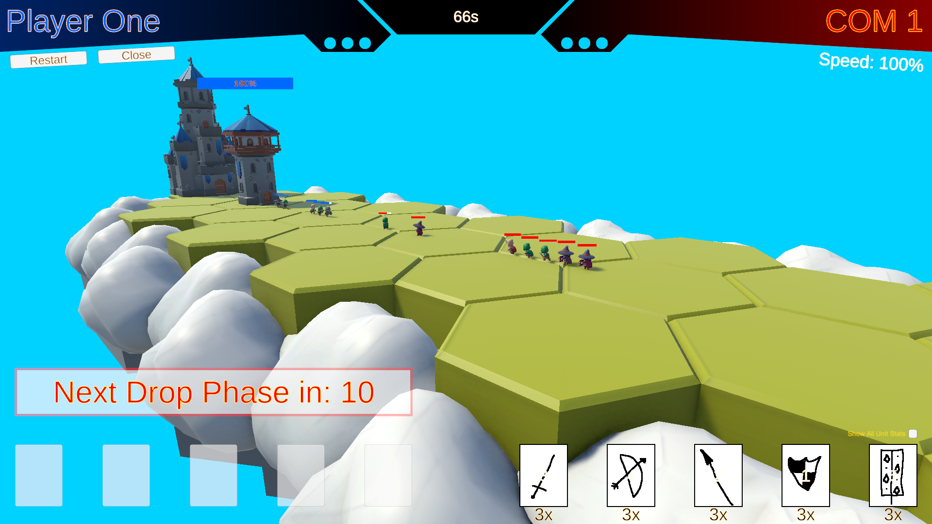 - Your primary goal in "KINGSROAD" is to destroy the enemy castle located on the opposite side of the floating island. Deploy your troops wisely to achieve victory!